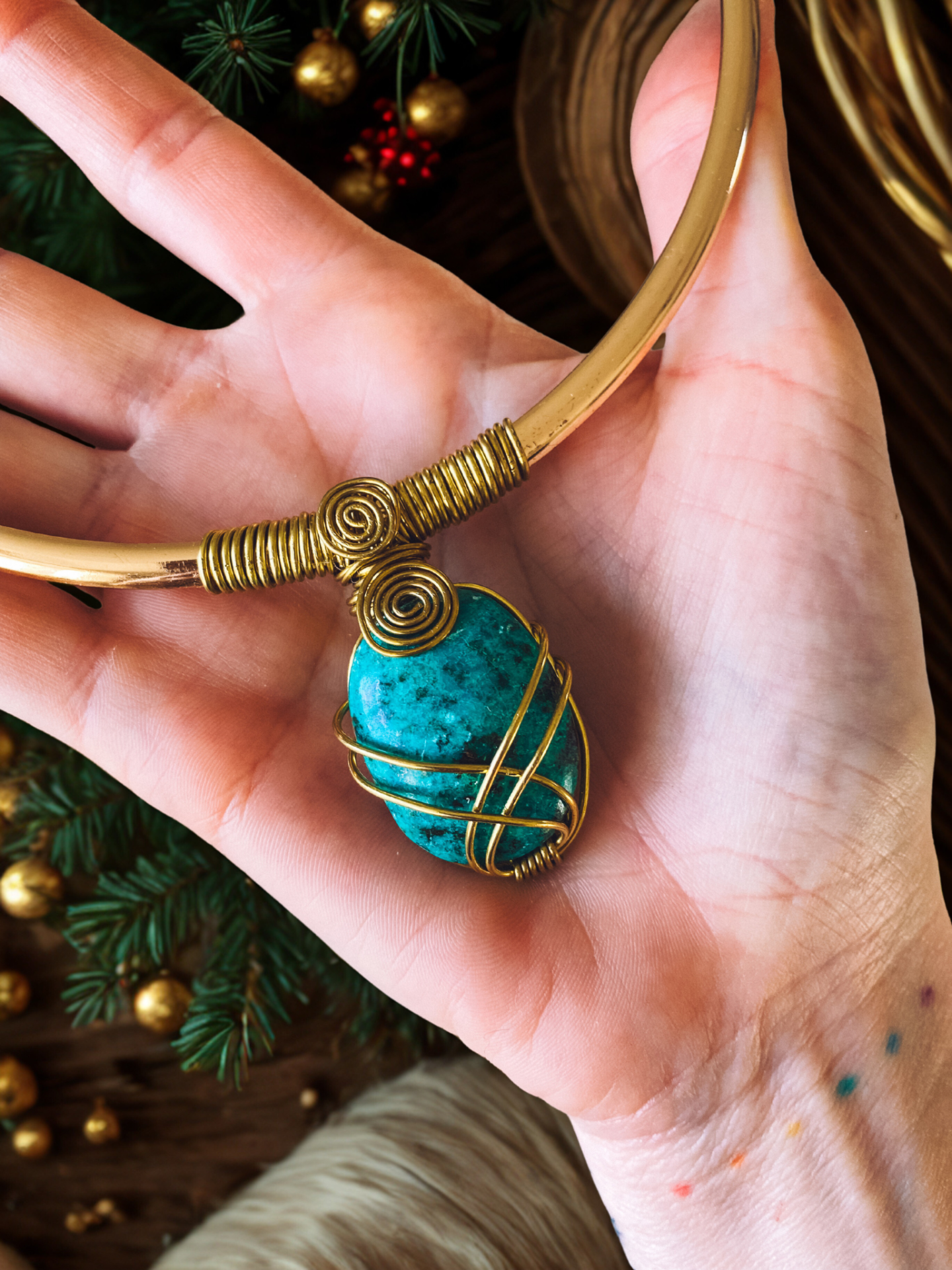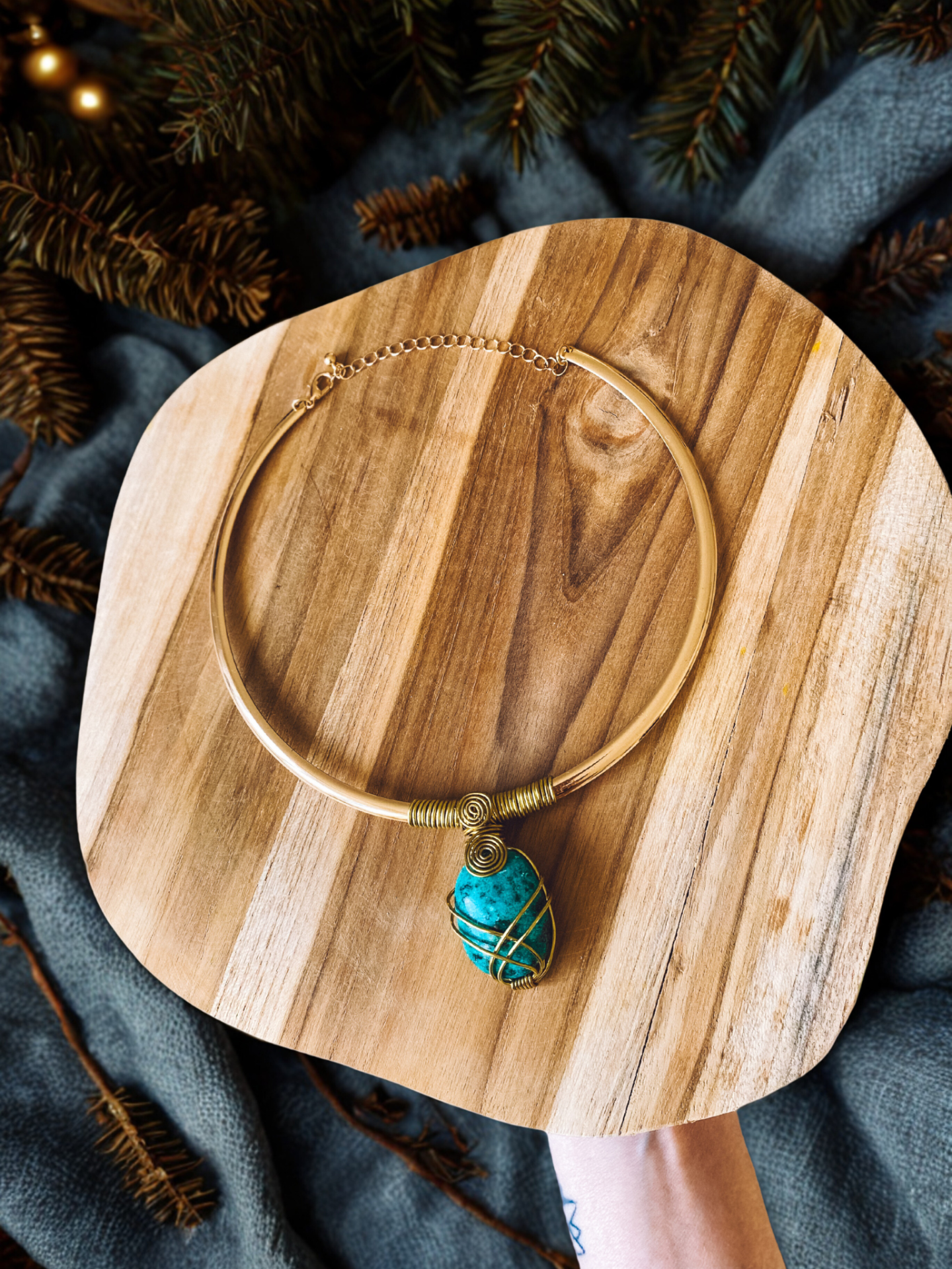 Jedinečný náhrdelník s peruánským tyrkysem dovezeným přímo z Peru pro každou indiánskou fuši. Tvořen technikou šperkařského drátování v autorském stylu.