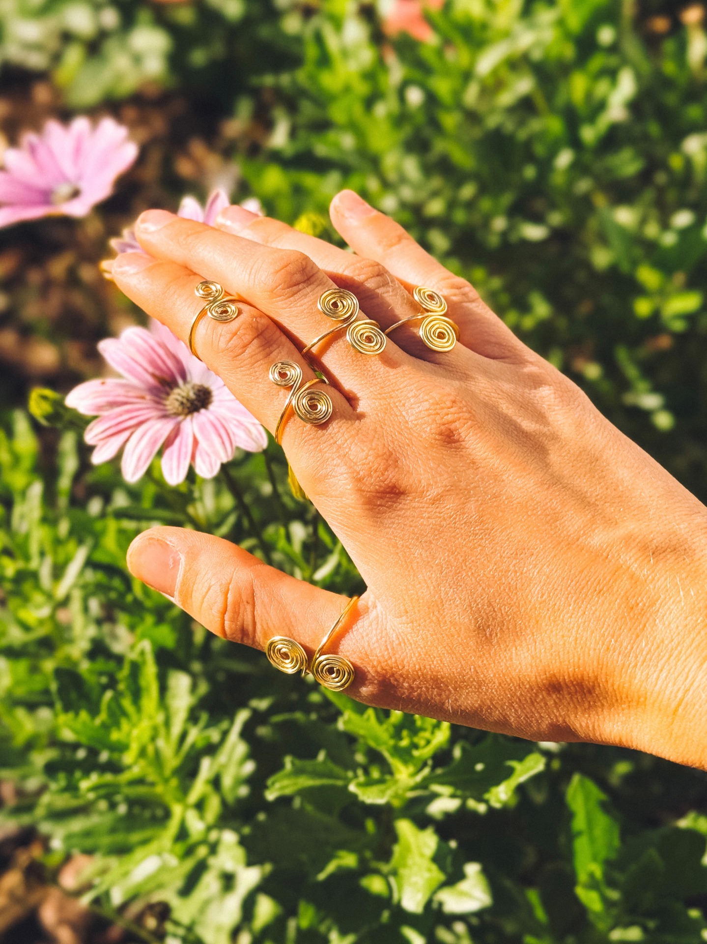 Minimalistický ručně stáčený prstýnek se symbolem dvojité SPIRÁLY z měděného drátku s pozlacením.