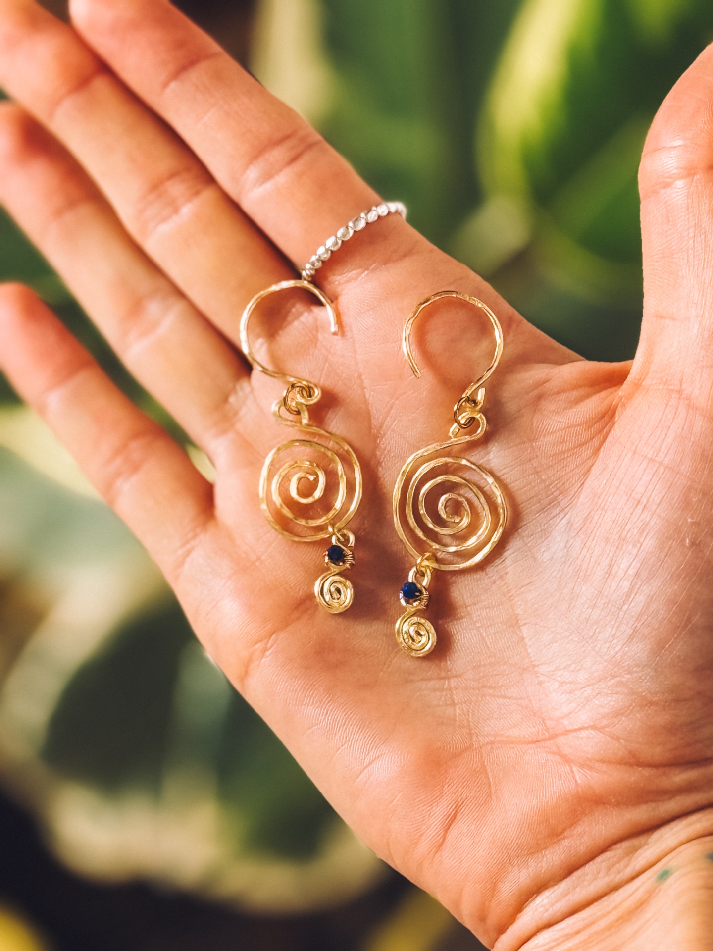 Ručně vyráběné náušnice od háčku až po přívěsky s posvátným symbolem spirály v orientálním stylu.