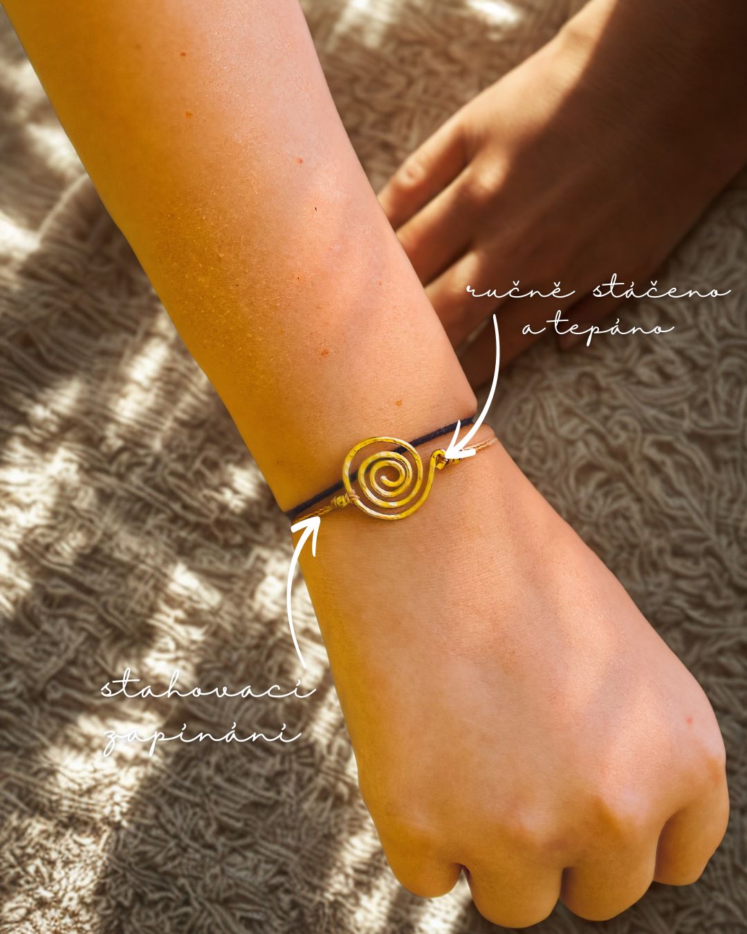 Ručně stáčený a tepaný provázkový náramek se symbolem SPIRÁLY ~ Cesta duše.